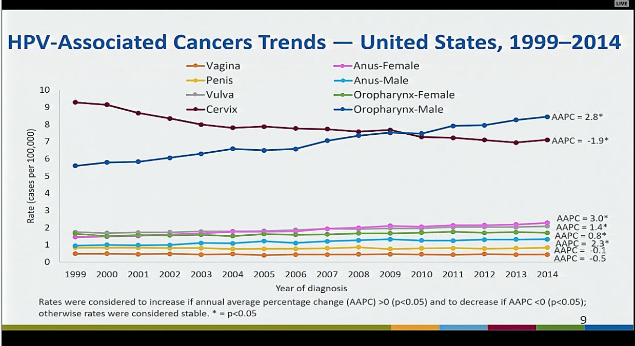 The next HPV presentation specifically examined trends in HPV-associated cancer types in the U.S. population from 1999-2014, which was followed by a review of the burden of disease in males.